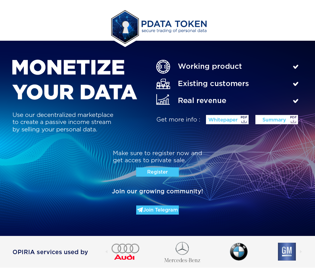 • Платформа Opiria - это полностью прозрачный открытый рынок для безопасной торговли персональными данными без посредников. Идентификатор PDATA помещает значение в личные данные и создает валюту, которая точно выражает их ценность.